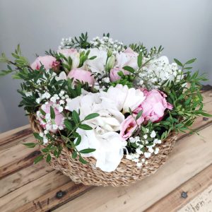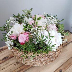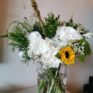 Bouquet de 7 roses blanches et ses fleurs des champs