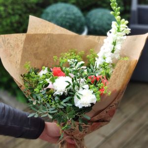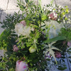 Bouquet de 17 roses blanches et ses fleurs des champs