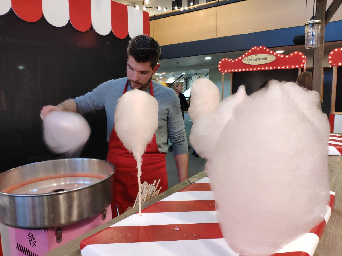 L’ambiance de la fête foraine passe bien entendu par les différentes activités mais également par les friandises. C’est bien le lieu où à n’importe quel âge on a le droit de se retrouver les doigts collés par la barbe à papa ! Alors pour régaler tout le monde vous pourrez déguster des cornets de pop-corn, des barbes à papa ou encore des donuts !